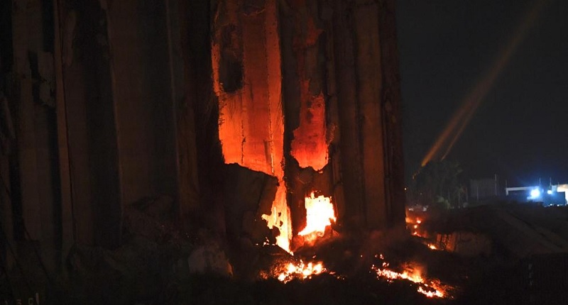 تجدّد الحريق في أهراءات القمح المدمّرة في مرفأ بيروت، وبقوة، بينما سجلت معدلات انحناء القسم الشمالي من الأهراءات تسارعًا ملحوظا خلال الساعات الماضية، مما رقع من احتمال سقوط هذا القسم في وقت قريب جداً، وهو ما إلى دفع إخلاء جميع الموظفين من محيط الاهراءات، بما فيها مراكز الدفاع المدني وفوج الإطفاء.