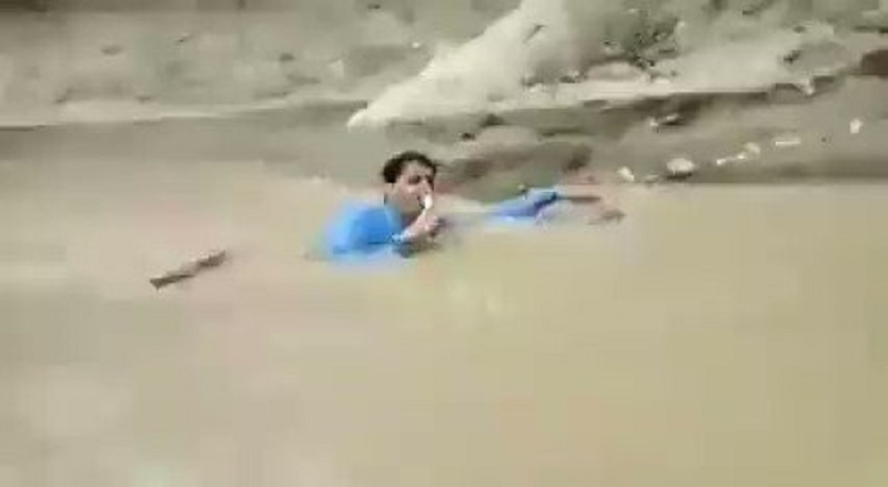 وكان الصحافي يتحدث عن حالة الفيضانات في البلاد عندما استجمع شجاعته فجأة وخاض وسط المياه العميقة ليقدم تقريره من قلب الحدث.