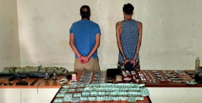 وعثر بحوزتهما على مظاريف تحتوي مادة الكوكايين، كمية من حبوب “Bipromorphine“، أداة تستخدم في تعاطي المخدرات، علب بلاستيكية تحتوي على آثار مادتي الهيرويين والكوكايين، حقن وأدوات تستخدم في تعاطي المخدرات، 3 علب يرجح انها أدوية مخدّرة، أسلحة وأعتدة حربية عبارة عن بندقية (M16) مسدسين حربيين ورمانتين يدويتين، مبلغ مالي وهواتف خليوية.