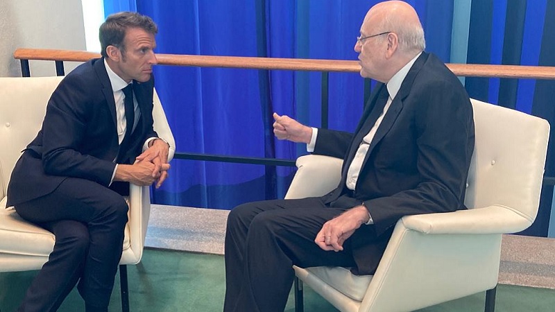 التقى الرئيس الفرنسي ايمانويل ماكرون رئيس الحكومة نجيب ميقاتي في مقر الامم المتحدة اليوم.