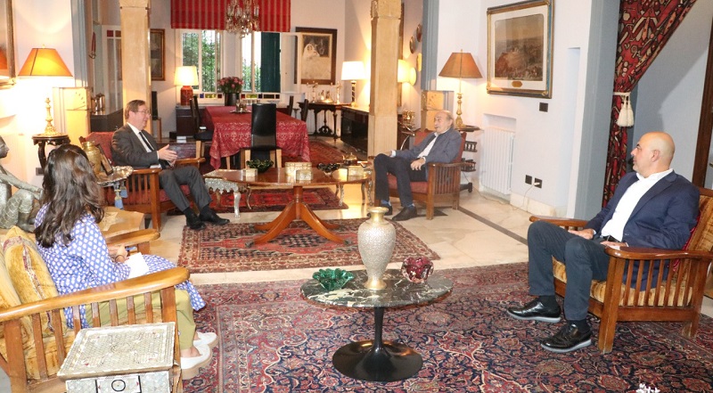 كما استقبل جنبلاط السفير البريطاني في لبنان هاميش كاول، بحضور رعد، وجرى عرض للتطورات الراهنة.