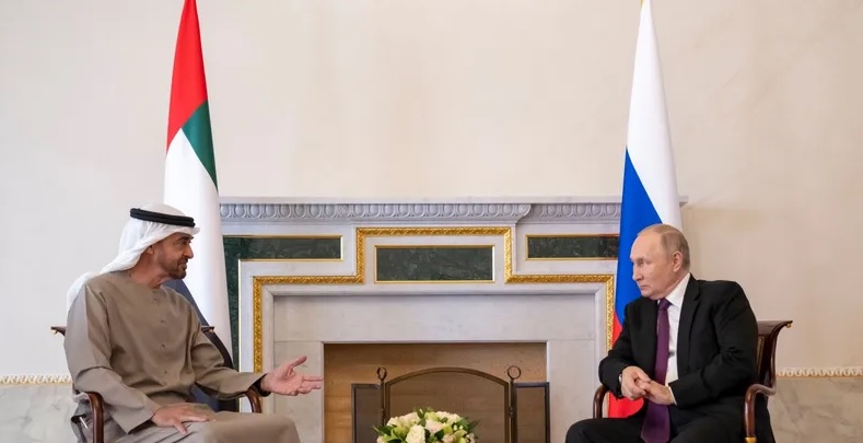 عقد رئيس دولة الإمارات العربية المتحدة، الشيخ محمد بن زايد آل نهيان، جلسة مباحثات مع الرئيس الروسي فلاديمير بوتين، في مدينة سانت بطرسبرغ، تناولت العلاقات الثنائية، وآخر التطورات الإقليمية والدولية.