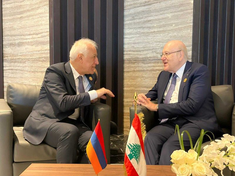 كما إجتمع ميقاتي مع رئيس جمهورية أرمينيا فاهاكن خاتشاتوريان، وتم البحث في وضع اللبنانيين في ارمينيا والمشاركة اللبنانية الفاعلة في كل القطاعات الاقتصادية وضرورة العمل على تطويرها.