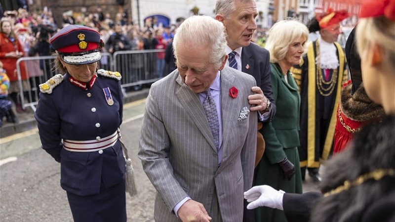 وكان الملك تشارلز يحيي الجماهير في يوركشاير، وسط هتافات “حفظ اللّه الملك”، عندما ظهر رجل خلف السياج وبدأ برمي البيض عليه قائلا: “تم بناء هذه البلاد على دماء العبيد” و”إنه ليس ملكي”.