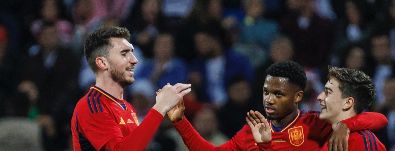 تقدم اللا روخا بثلاثية الا ان الاردن، سجل هدفا في اللحظات الاخيرة لينتهي اللقاء 3 – 1. سجل للماتادور انسو فاتي د 13 وبابلو باييز د 57 ونيكو ويليامز د 84، بينما سجل للنشامى حمزة الدردور د 90.