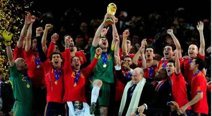 كأس العالم 2010:توج منتخب إسبانيا بلقب مونديال 2010 بعد فوزه في المباراة النهائية على منتخب هولندا بنتيجة 1-0 علماً انه خسر مباراته الاولى أمام سويسرا بنتيجة 1-0 قبل ان يتصدر مجموعته ويحرز اللقب الأول والوحيد في تاريخه.