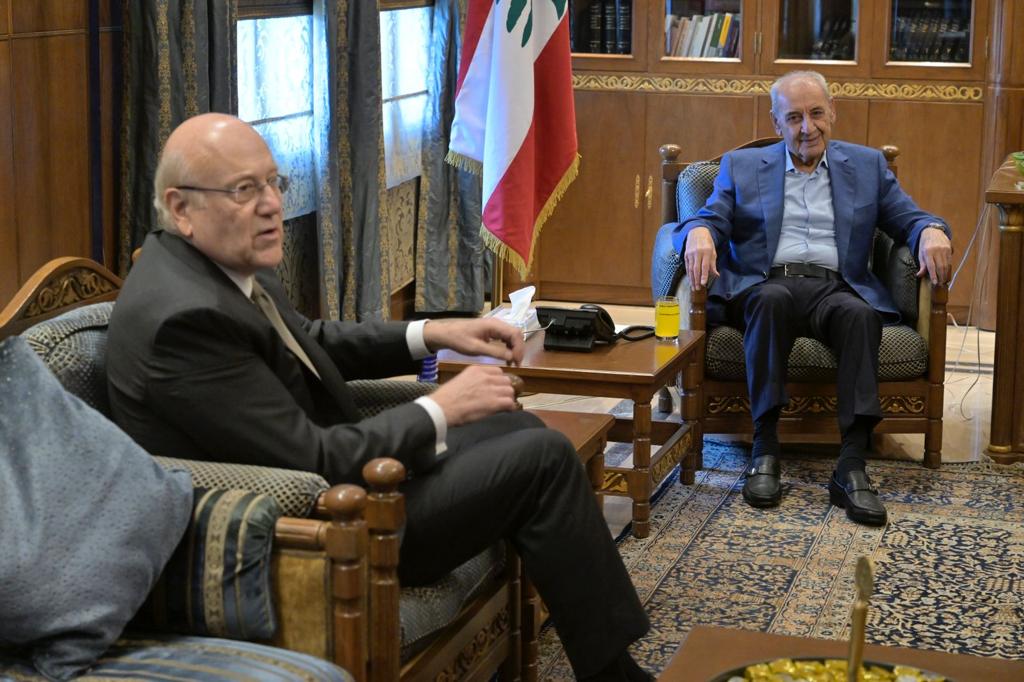 استقبل رئيس مجلس النواب نبيه بري ظهر اليوم، رئيس حكومة تصريف الاعمال نجيب ميقاتي في عين التينة.