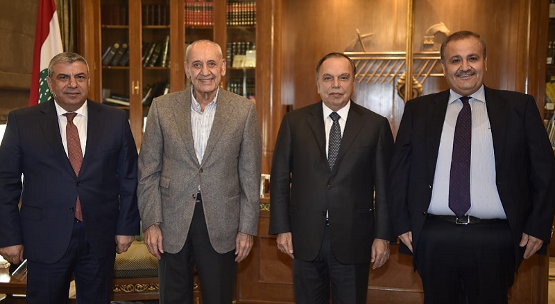 وبحث بري شؤوناً نقابية مع وفد من إتحاد المقاولين العرب، ضم رئيس اتحاد المقاولين العراقيين علي سنافي، ونقيب مقاولي الأشغال العامة والبناء اللبنانية المهندس مارون حلو، ونائب رئيس إتحاد المقاولين في الدول الإسلامية شريف وهبي.
