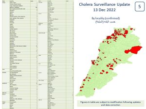 أعلنت وزارة الصحة العامة في تقرير نشرته عن حالات الكوليرا في لبنان “تسجيل إصابتين جديدتين رفعت العدد التراكمي للحالات المثبتة الى 660، فيما لم تُسجّل أي حالة وفاة، وسجل العدد التراكمي للوفيات 23 وفاة”.