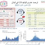 كشفت وزارة الصحة العامة تسجيل 2017 إصابة جديدة بفيروس كورونا، رفعت العدد التراكمي للإصابات إلى 711259، ولفتت إلى أنه منذ تاريخ 3 كانون الأول تم تسجيل 433 حالة مصابة بالمتحور “اوميكرون”. وتابع التقرير أنه “تم تسجيل 15 حالة وفاة رفعت العدد التراكمي للوفيات الى 9027”.