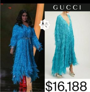 وحمل فستان أحلام توقيع دار الأزياء العالمية Gucci، فيما بلغ سعر التصميم 16,188 دولار أميركي أي ما يقرب من نصف مليون جنيه مصري مما أثار الدهشة بين متابعيها على مواقع التواصل الاجتماعي.