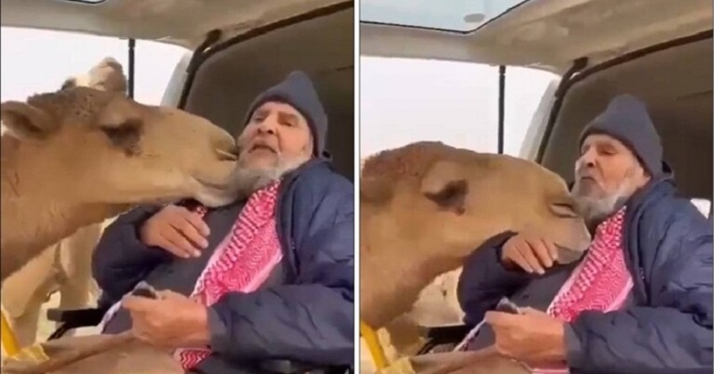 ويظهر في الفيديو الذي انتشر على نطاق واسع، رجل مسن داخل سيارة إسعاف، فيما الناقة تقترب منه وترحب به، وكأنها تحاول احتضانه وتقبيله.