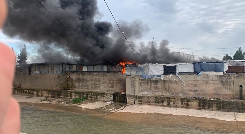 اندلع حريق كبير في إحدى البسطات الموجودة داخل “سوق الأحد” في طرابلس، شمال لبنان.