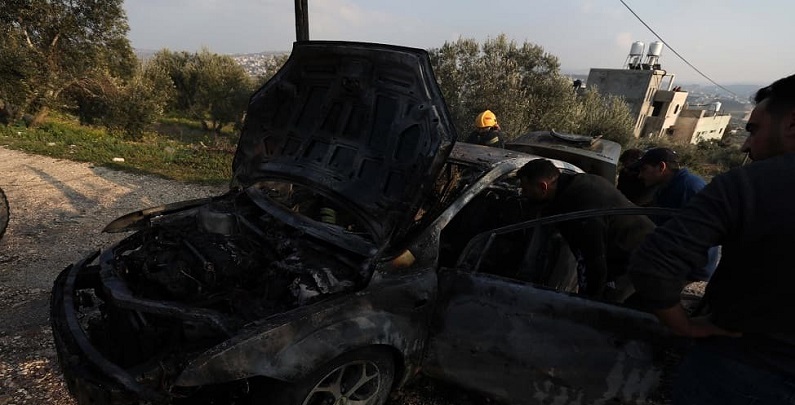 أقدم عدد من المستوطنين على إضرام النار بسيارتين فلسطينيتين في قرية بورين، جنوب نابلس في الضفة الغربية المحتلة.