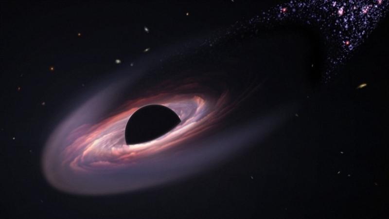 أظهر اكتشاف غير مسبوق، أن “ثقب أسود ضخم” يتدفّق عبر الفضاء بسرعة قصوى مخلّفًا وراءه سلسلة من النجوم تبعد مئتي ألف سنة ضوئية.