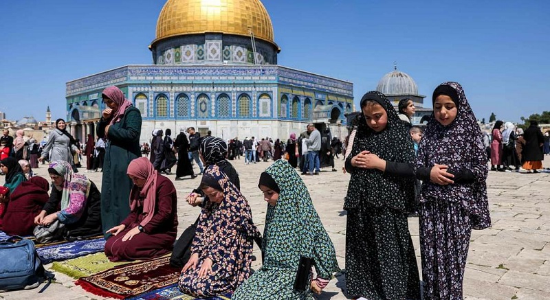 رُفع آذان صلاة الجمعة من المسجد الأقصى على مسامع آلاف المصلين، الذين توافدوا لأداء صلاة الجمعة الرابعة من شهر رمضان، بينما تنتشر قوات العدو في محيط باب العامود بالقدس المحتلة.
