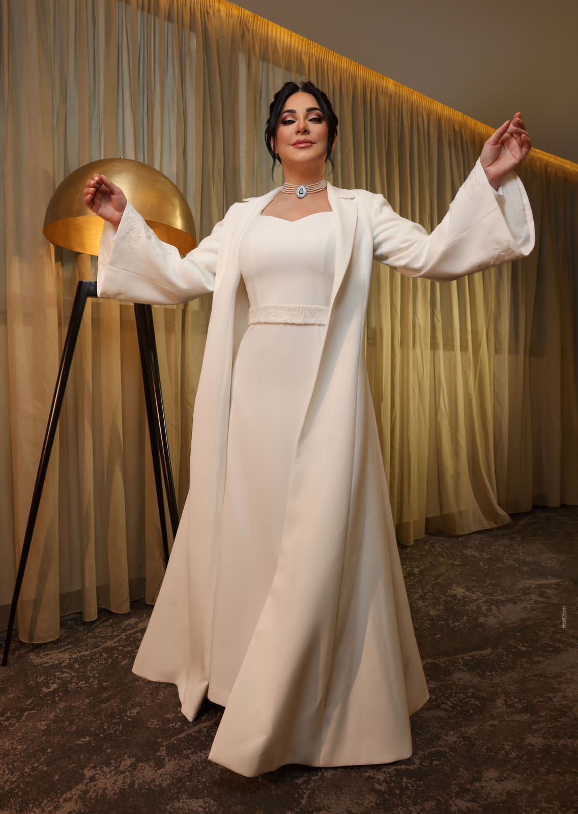 سلاف اختارت اطلالتها من مجموعة” آريا” بالتعاون مع منسق الملابس ايلي مشنتف التي أطلقتها مصممة الأزياء داليدا عياش، احتفاءا بحلول شهر رمضان من اللون الأبيض باطلالة مناسبة تمامًا لعيد الفطر المبارك.
