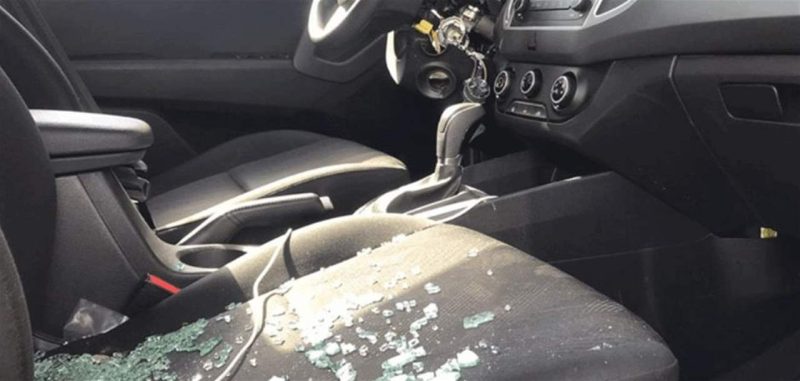 وأظهرت الصور زجاج السيارة المكسور، حيث حاول السارقون كسر للمقود لسرقة السيارة، الا انهم لم يفلحوا في اتمام مهمتهم.
