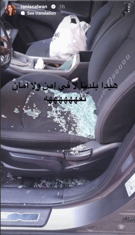 نشرت الممثلة اللبنانية رانيا سلوان، عبر خاصية القصص القصيرة على حسابها عبر انستغرام، مجموعة صور وثقت من خلالها تعرّض سيارتها للكسر والخلع والسرقة.