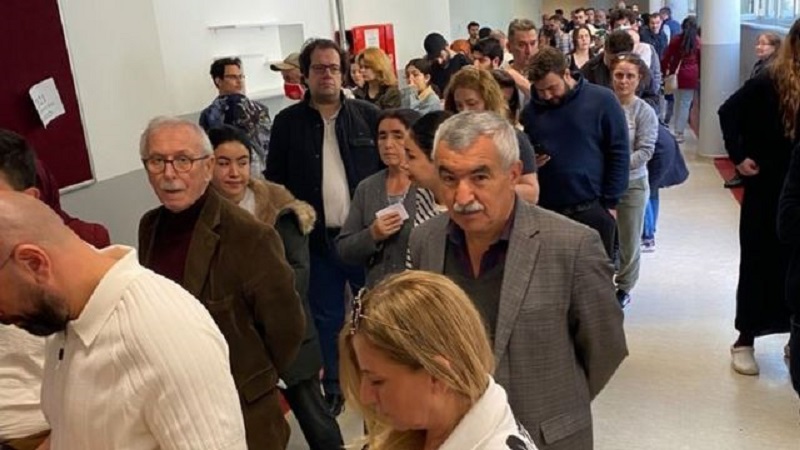 وخلال يوم الانتخابات كانت محطات الاقتراع في أرجاء تركيا تغص بالمشاركين، إلى درجة أن بعض المحطات شهدت اصطفاف الناخبين في طوابير طويلة.