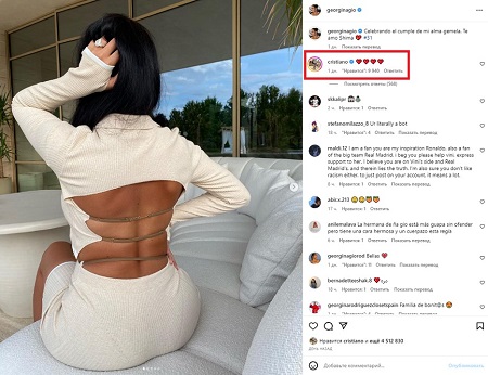 وعلقت جورجينا على الصور “مدريد .. الاحتفال بعيد ميلاد توأم روحي الـ31 .. أحبك شيما”، فيما علّق رونالدو من خلال أربع قلوب تعبيرية، وتفاعل الجمهور مع اللقطات التي حظيت بإعجاب أكثر من 4 ملايين و500 ألف شخص خلال 24 ساعة من نشرها.