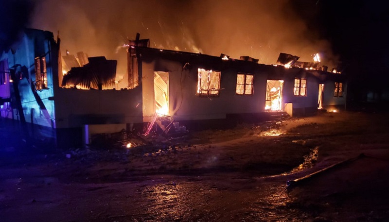 وقد قتل العديد من الأطفال إلى جانب عدد كبير من الجرحى، في حريق نشب في مهجع مدرسة ليل الأحد في المهدية، وهي مدينة غير ساحلية غنية بالمناجم في وسط غويانا.