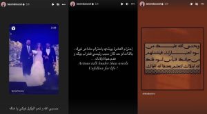 لكن المفاجأة كانت بأن بسمة بوسيل قد نشرت فيديو الزفاف، وأرفقته بعبارة “حسبي الله ونعم الوكيل فيكي يا هالة”. وتابعت بسمة في “ستوري” أخرى قائلةً “احترام العشرة بيبتدي باحترام مشاعر غيرك.. بالذات لو حد كان سبب رئيسي في خراب بيتك.. وهدم حياة أولادك”.