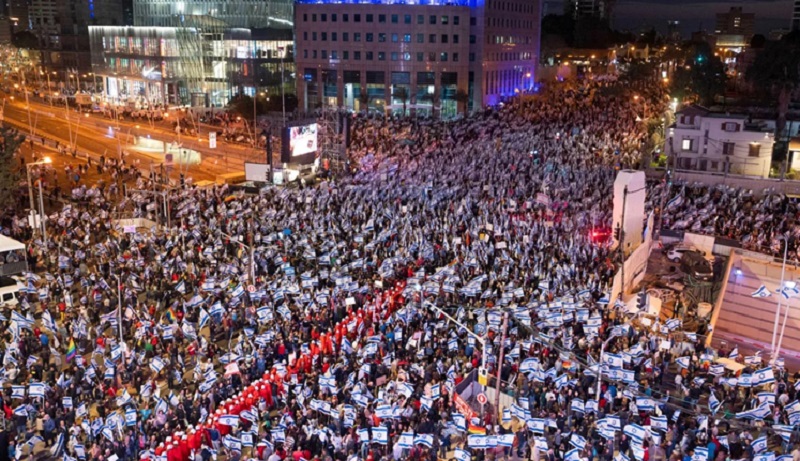 تابع آلاف “الإسرائيليين” مساء اليوم السبت في تل أبيب ومدن أخرى تظاهرهم للأسبوع الثالث والعشرين على التوالي، ضد خطة الإصلاح القضائي المثيرة للجدل التي تريد تطبيقها حكومة بنيامين نتانياهو.