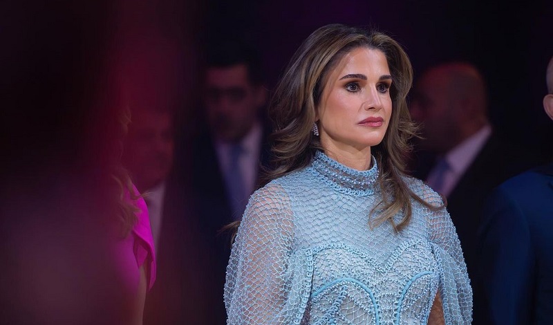 تألقت الملكة رانيا مؤخرًا في إطلالة جديدة تتميز بالفخامة في أحدث ظهور لها بالحفل الخيري الذي أقامته مؤسسة الحسين للسرطان، وارتدت فستانًا باللون الأزرق السماوي، مع بطانة سفلية باللون البيج.