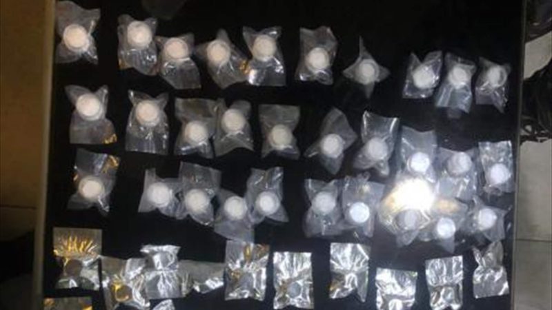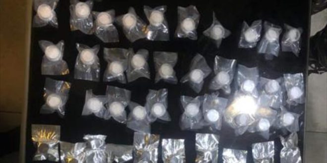 ووفق البيان، “بتفتيش السيارة، ضُبِطَت كمية من العلب والطبات البلاستيكية بأشكال مختلفة وأكياس بلاستيكية، بداخلها موادًا مخدّرة”.