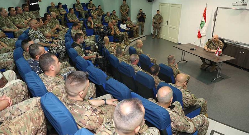 وجاء كلام قائد الجيش خلال زيارته كلية فؤاد شهاب للقيادة والأركان حيث التقى ضباط دورة الأركان 37 الذين سيتخرجون الخميس المقبل بحضور ضباط الكلية.