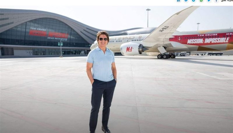 وصل الممثل الأميركي توم كروز الى مطار أبوظبي الدولي الجديد، على متن طائرة “بوينغ 787 دريملاينر” تابعة لأسطول شركة “الإتحاد للطيران”حملت شعار فيلمه “Mission: Impossible – Dead Reckoning Part One”، مدشنا بذلك الرحلة الأولى إلى المبنى.