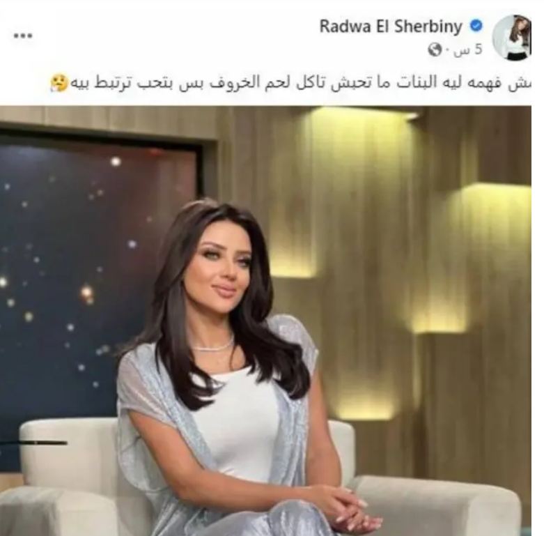 هذا وكانت رضوى الشربيني أثارت جدلًا بعد نشرها صورة لها، ارفقتها بالتعليق التالي: “مش فاهمة ليه البنات ما بتحبش تاكل لحم الخروف بس بتحب ترتبط بيه”، ما تسبب باستياء الكثير من الجمهور الذي اتهمها بالإساءة إلى الرجل ووصفه بالخروف، وسط تفاعل كبير من متابعاتها الفتيات.