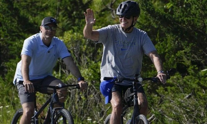 وخلال قيام بايدن بجولة على الدراجة، حاول مراسلون سؤاله عما إذا كان يخطط لرحلة إلى هاواي المتضررة، فرد بايدن: “نحن نبحث هذا الأمر”، وهو يمر بالقرب من الصحافيين دون أن يحاول حتى إبطاء دراجته.