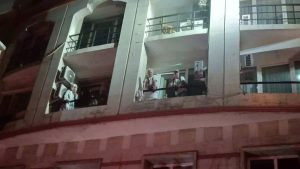 وبسبب الدخان الكثيف، لم يتمكن المقيمون في الفندق من مغادرة غرفهم وهرع رجال الإطفاء والشرطة والفرق الطبية إلى مكان الحادث.