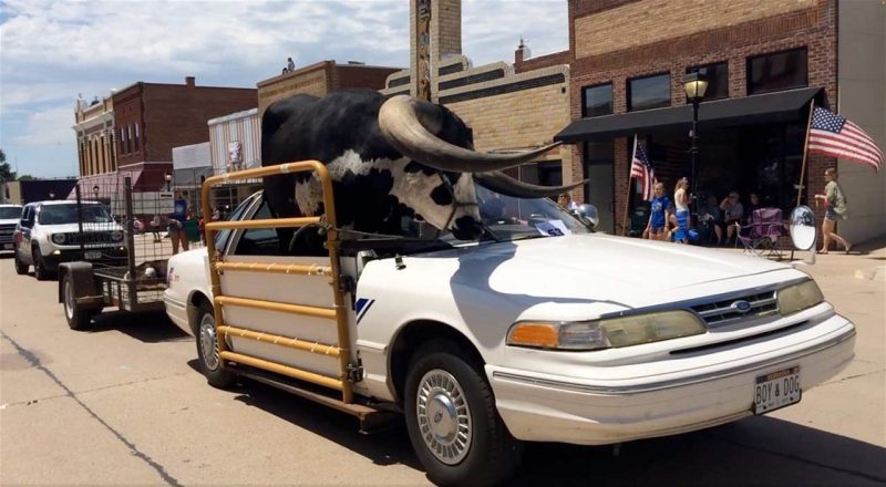 فوجئت الشرطة في نبراسكا في الولايات المتحدة، برجل يدعى لي ماير، يقود سيارته المُعدّلة لغرض وضع ثور واتوسي، هودي دودي، يزن أكثر من نصف طن، في مقعد السائق المساعد.
