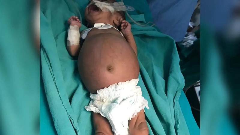 وهذه الحالة الاستثنائية، المعروفة باسم جنين داخل جنين، تركت الجراحين في مستشفى بمدينة صديق أباد في باكستان في حالة ذهول.