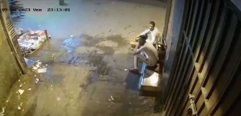 أظهر مقطع مصور التقطته كاميرات مراقبة بشارع قرب مراكش المغربية نجاة شابين كانا يجلسان على مدخل أحد الأزقة لحظة وقوع الزلزال.