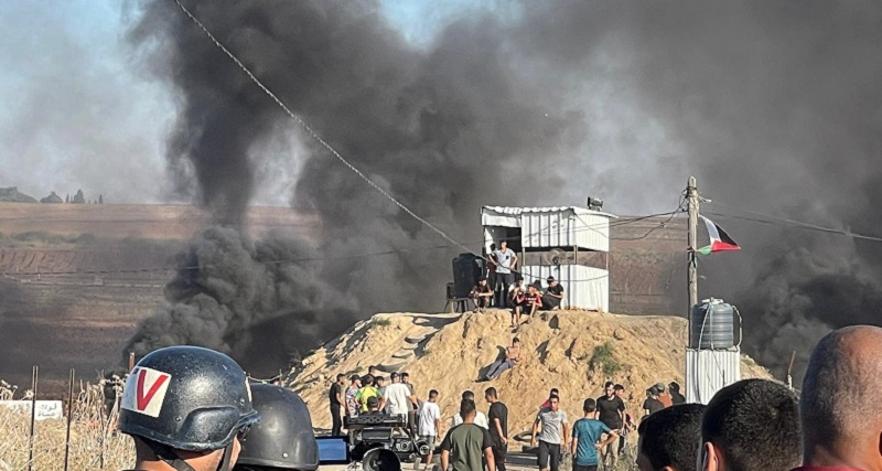وأصيب 5 شبان فلسطينيين برصاص الاحتلال واثنين آخرين بقنابل الغاز، والعشرات بحالات اختاناق، اثر استهداف قوات الاحتلال للشباب الثائر في تظاهراته قرب السياج الفاصل لقطاع غزة.