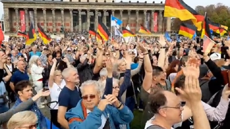 تجمّع آلاف الألمان في برلين اليوم بمناسبة “يوم الوحدة”، مطالبين برحيل حكومة المستشار أولاف شولتس، ووقف تسليح أوكرانيا وتمويلها على حسابهم.