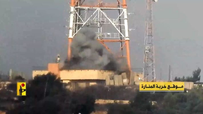 نشر الإعلامي الحربي في المقاومة الإسلامية فيديو يظهر فيه مشاهد إستهداف مجاهدي المقاومة الإسلامية بتاريخ 24/10/2023 لموقعي جيش العدو الإسرائيلي في خربة المنارة وثكنة برانيت عند الحدود اللبنانية الفلسطينية بالأسلحة الصاروخية الموجّهة والقذائف المدفعية، حيث حققوا فيهما إصابات مباشرة.