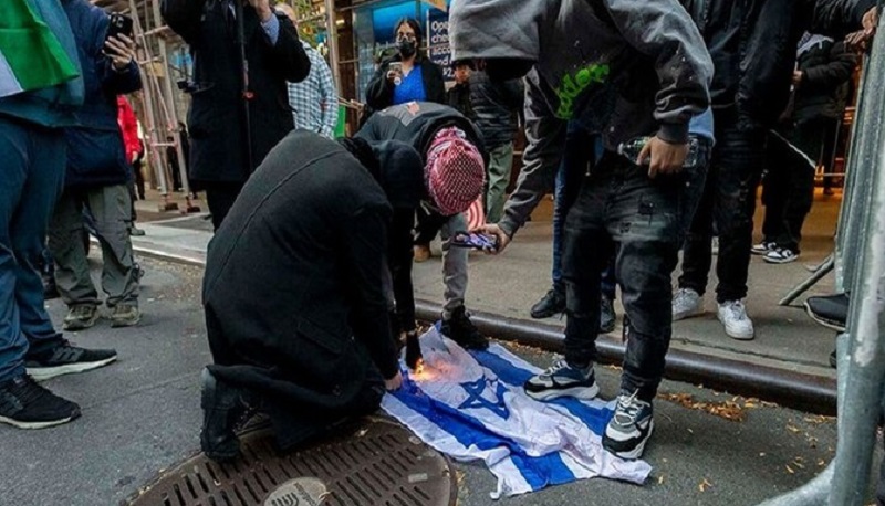 وقام المتظاهرون المؤيدون لفلسطين المحتلة، بحسب “فوكس نيوز”، بإزالة المنشورات وداسوا عليها، كما أشعل أحد المتظاهرين النار في العلم “الإسرائيلي”.