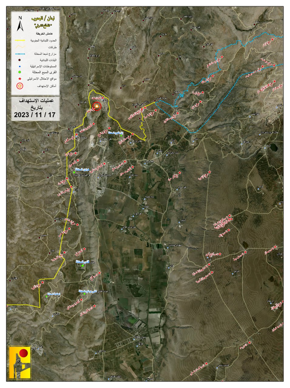 أعلنت “المقاومة الإسلامية” أن مجاهديها استهدفوا عند الساعة 02:00 من بعد ظهر يوم الجمعة 17-11-2023، تجمعاً لجنود الاحتلال الاسرائيلي في محيط موقع المطلة بواسطة محلقتين انقضاضيتين هجوميتين، وأوقعوا فيه إصابات مؤكدة.