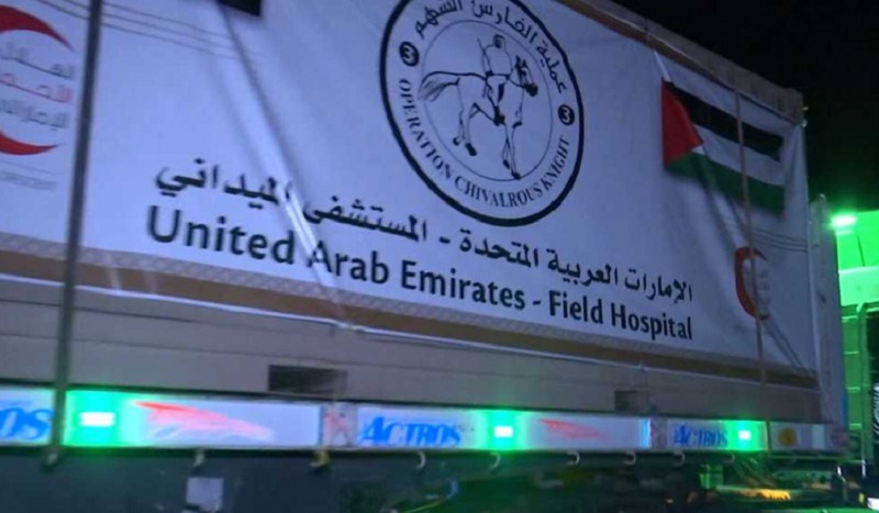دخلت الشاحنات التي تنقل الجزء الثاني من المستشفى الميداني الإماراتي إلى قطاع غزة عبر معبر رفح، بالإضافة إلى 4 شاحنات من المساعدات تنقل نحو ألف طن من المواد الإغاثية، ضمن عملية الفارس الشهم 3.
