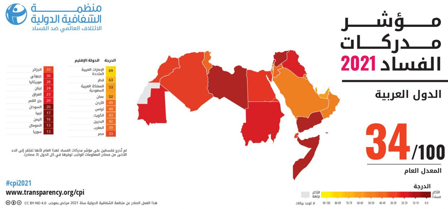 تصنيف الدول العربية في مؤشر الفساد للعام 2021