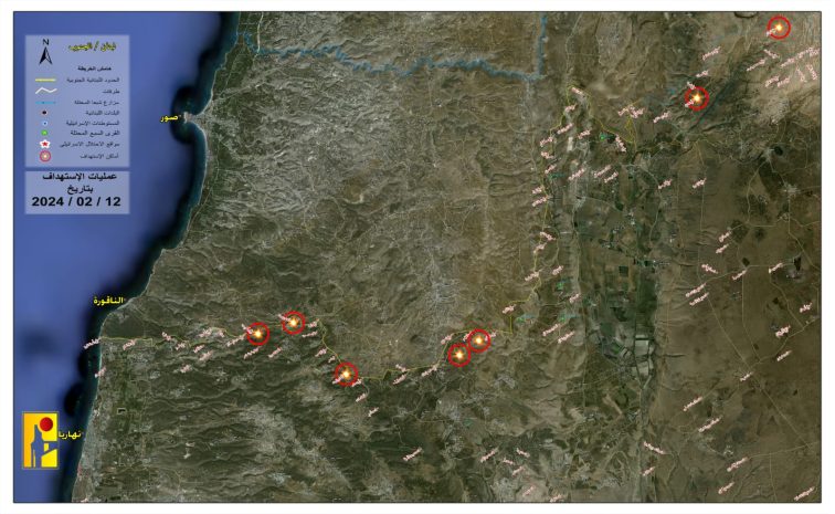 نفّذت “المقاومة الإسلامية” عددًا من العمليات ضد مواقع وانتشار جيش العدو الإسرائيلي عند الحدود اللبنانية الفلسطينية بتاريخ الإثنين 12-2-2024، وفقًا للتالي:
