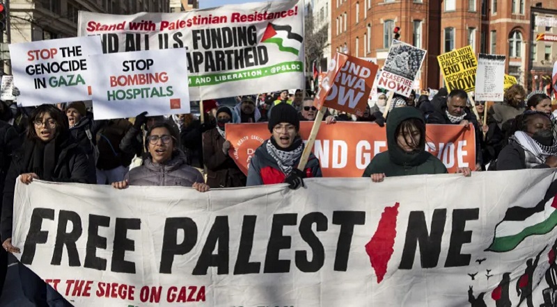 شارك آلاف المتظاهرين في مسيرة بالعاصمة الأميركية واشنطن، أمام مبنى الكونغرس رغم انخفاض درجات الحرارة، مطالبين بوقف إطلاق النار بشكل فوري في قطاع غزة.