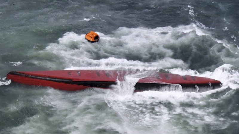 وكانت الناقلة “كيويونغ صن” راسية بسبب سوء الأحوال الجوية، وطلبت المساعدة بعد الساعة 7:00 من صباح الأربعاء (22:00 مساء الثلاثاء بتوقيت غرينتش)، وأبلغت عن أن السفينة كانت تميل.