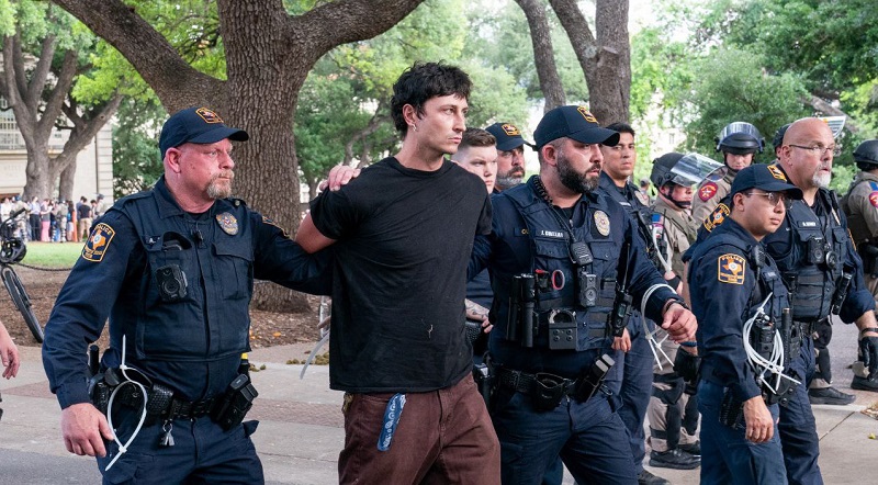قمعت الشرطة الأميركية طلبة جامعة تكساس في أوستن، خلال اعتصامهم تضامناً مع غزة ورفضاً لدعم الاحتلال الاسرائيلي.