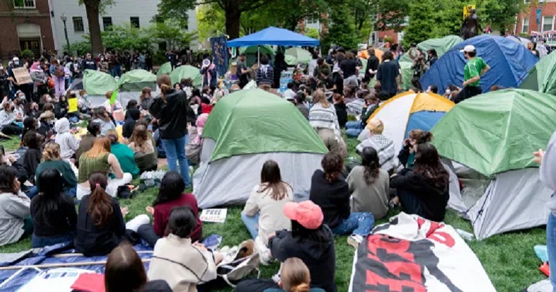شكّل طلاب جامعة واشنطن في سانت لويس بالولايات المتحدة، جسراً بشرياً لحماية مخيمهم دعماً لغزة، وللمطالبة بقطع الجامعة علاقاتها مع شركة “بوينغ” للطائرات المتورطة في دعم الاحتلال بعدوانه على غزة.